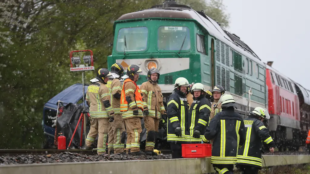Nach Angaben der Bundespolizei wurde das Fahrzeug beim Überqueren des Gleises seitlich vom Güterzug erfasst und etwa 200 Meter mitgeschleift. Die Halbschranke sei nach ersten Aussagen des Lokführers und auch nach Beobachtungen von Zeugen zum Zeitpunkt der Kollision geschlossen gewesen. Der Lokführer hatte laut einem Atemalkoholtest 0,0 Promille, sagte der Sprecher. Bereits kurz nach der Kollision war ein Rettungshubschrauber an der Unfallstelle - doch den Opfern war nicht mehr zu helfen.
