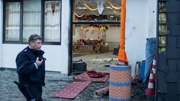 17.04.2016, 04:38 UhrDer formelle Teil der Hochzeitsfeier in einem Sikh-Tempel in Essen ist gerade vorüber, als ein maskierter Mann offenbar eine Art Bombe in das Gebäude wirft. Kurz nach der Tat nimmt die Polizei drei Männer fest.