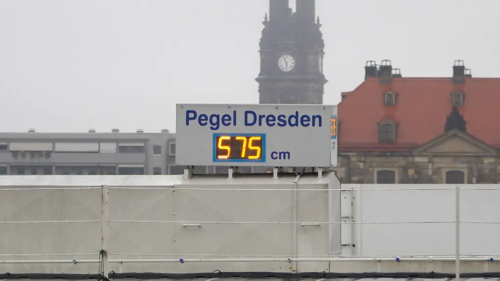 An der Elbe in Dresden nähert sich der Pegelstand in langsamen Schritten der Sechs-Meter-Marke. Das Wasser stand am Pegel Dresden um 7 Uhr bei 5,86 Metern, wie aus Daten des sächsischen Hochwasserzentrums hervorging. Demnach könnte noch die Alarmstufe 3 erreicht werden, die an dem Pegel ab gut sechs Metern Wasserstand gilt - normal sind 1,42 Meter. Bei der Jahrhundertflut 2002 waren es 9,40 Meter.