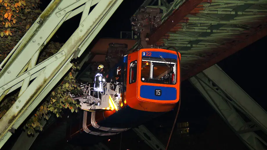 Nach Angaben der Polizei ging bei ihr kurz vor 18.30 Uhr der Notruf ein. Es habe bis 21.45 Uhr gedauert, bis alle Fahrgäste und der Fahrer aus der Schwebebahn gerettet gewesen seien. Zwei der Insassen hätten sich anschließend ins Krankenhaus begeben. Auch einer der betroffenen Autofahrer sei nach eigenen Angaben leicht verletzt worden.