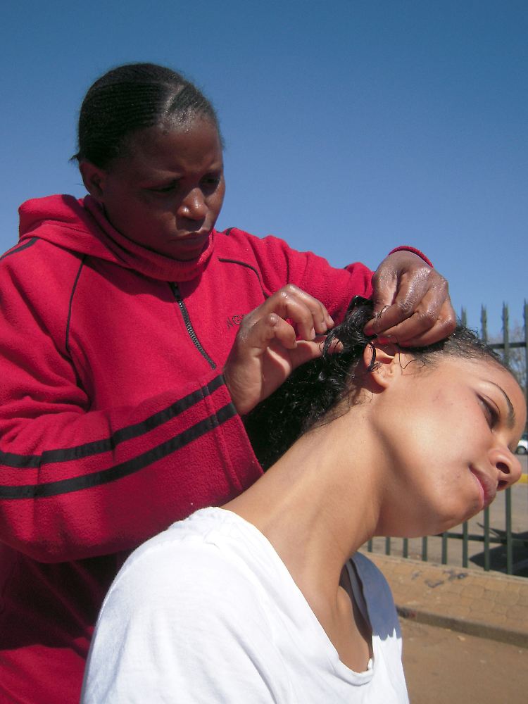 Überhaupt, die Haare - für viele Afrikanerinnen sind sie von klein auf Quelle von Stolz und Schmerz. Die Bandbreite der Flechtfrisuren ist schier unendlich. Kleine Mädchen müssen oft stundenlang ausharren, wenn mal wieder eine neue Zöpfchenfrisur fällig ist - und wegen des schmerzhaften Kämmens wird der Friseurbesuch öfter von Tränen begleitet. Viele Frauen ziehen angesichts solcher Kindheitserinnerungen einen kurzgeschorenen Schopf vor und setzen auf eine Sammlung von Perücken oder auf eingeflochtenes Kunsthaar.