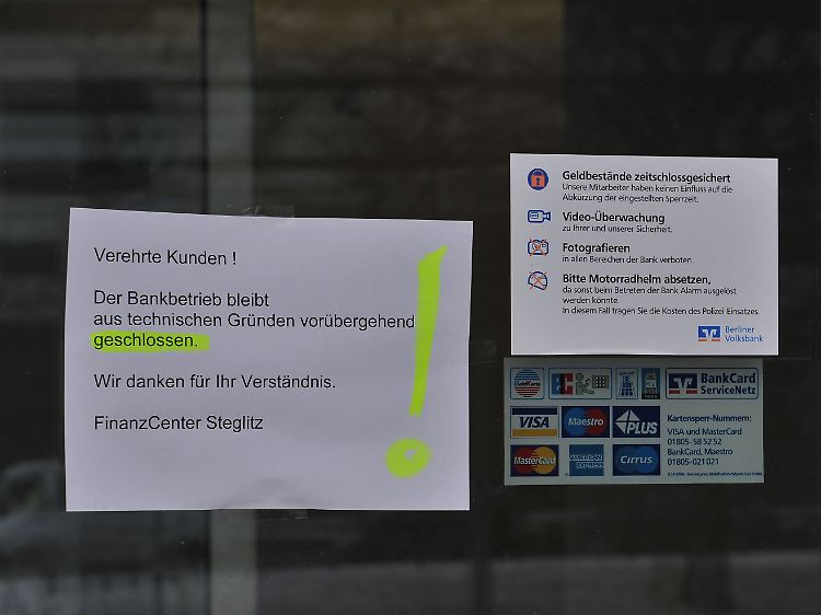 Und so erfährt es der Kunde: Aus "technischen Gründen" bleibt die Volksbank-Filiale vorübergehend geschlossen.