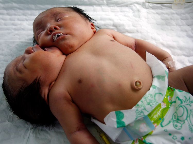 Bei zwei Ultraschall-Aufnahmen während der Schwangerschaft war die Missbildung nicht aufgedeckt worden, berichtete das Krankenhaus am Montag. Erst bei einer weiteren Untersuchung vor einer Woche wurden die zwei Köpfe entdeckt. Die Eltern wollten eine Abtreibung, doch war es dafür zu spät. Mit 4,05 Kilogramm Gewicht und 51 Zentimetern Größe kamen die Kinder am Donnerstag durch einen Kaiserschnitt zur Welt.
