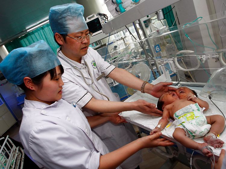 Es ist ein seltener Fall von siamesischen Zwillingen. Sie teilten sich die meisten Organe, hätten aber zwei Wirbelsäulen, zwei Speiseröhren und zwei linke Herzkammern, wie die "Huaxi Dushibao" ferner berichtete. Die Ärzte stünden in Kontakt mit Experten in anderen Krankenhäusern, um das weitere Vorgehen zu erörtern.
