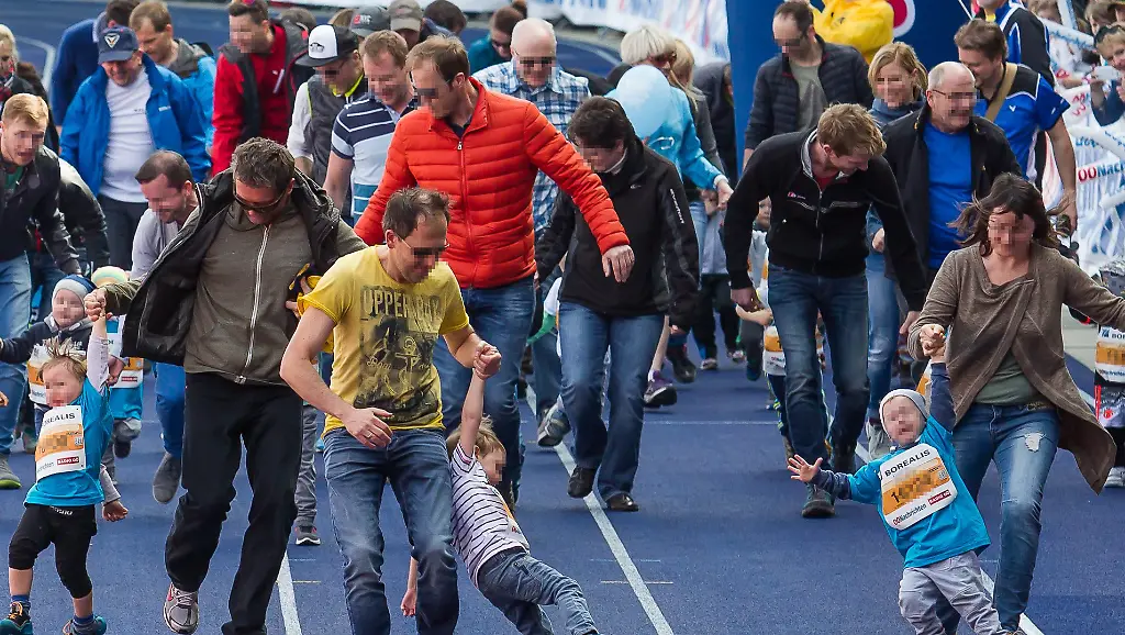 Wer wollte hier gewinnen?Eltern zerren Kinder ins Ziel