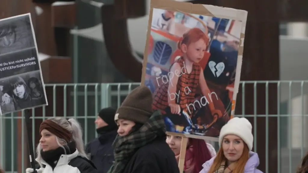 Trotz Minusgraden ist Jensen nicht alleine gekommen: Dutzende Kinderbilder kleben auf Plakaten, die von vielen der etwa 300 Teilnehmer in die Höhe gehalten werden. Sie sollen zeigen, in welchem Alter die Betroffenen durch die Hölle gingen, wie sie selbst sagen. Dazu haben sie Botschaften geschrieben wie "Kinder brauchen eine Lobby" und "Epsteins gibt es auch in Deutschland".