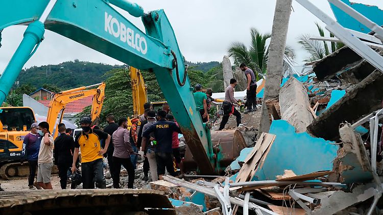 Die Wetterbehörde warnte die Einwohner zudem vor weiteren Nachbeben, die möglicherweise noch stärker sein könnten als das erste Beben und einen Tsunami auslösen könnten. Deshalb sollten sie alle Strandgebiete meiden. Durch den Erdstoß wurden Dutzende Häuser zerstört oder beschädigt. Unter anderem stürzten zwei Krankenhäuser und das Gebäude der Lokalverwaltung in Mamuju ein, wie Muhammad Idris, Sprecher des Gouverneurs, mitteilte. "Wir versuchen gerade, Menschen aus dem Verwaltungsgebäude zu retten. Wir können ihre Stimmen hören, aber sie können sich nicht bewegen."