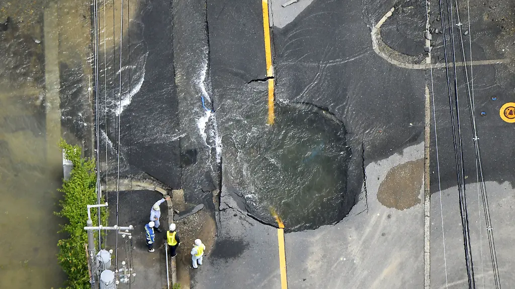 Schwere Schäden an Straßen und Gebäuden: Ein Wasserrohrbruch hat diese Straße im Vorort Takatsuki unterspült. (Foto: REUTERS)