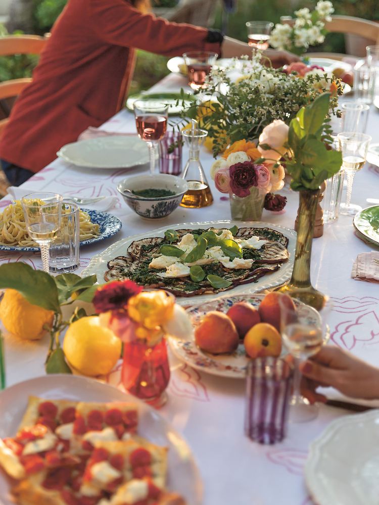 Amber Guinness zeichnet in ihrem Erstling ein eindrucksvolles Bild von ihrem Zuhause mit den üppigen Festen, die sie dort veranstaltet - und für die eine gute Vorbereitung das A und O ist: "Da ich von Natur aus recht chaotisch veranlagt bin, habe ich gemerkt, dass ich einen Plan erstellen und eine Einkaufsliste schreiben kann, wenn ich das Menü zuvor schriftlich festgelegt habe. So kann ich das Kochen und die geschäftige Vorfreude auf die Gäste viel mehr genießen." Da spricht mir Amber Guinness aus dem Herzen, denn es ist tatsächlich so: Wenn die Zutaten vorbereitet sind, Getränke und Knabbereien bereitstehen, ist das schon die halbe Miete. "Auf diese Weise vermeide ich es, wie ein aufgescheuchtes Huhn auf und nieder zu springen, um mehr Eis, Snacks oder Drinks zu holen. Ist alles zur Hand, können sich die Leute das nehmen, wonach ihnen gerade ist." Amber Guinness' Überlegungen reichen von Sitzordnung über Timing bis eine halbe Stunde vor Ankunft der Gäste: "Ich werfe einen Blick auf das Fleisch, um zu sehen, ob ich es mit Bratensaft übergießen muss, schiebe das vorbereitete Gemüse in den Backofen und stelle den Topf mit Salzwasser auf den Herd, falls es Pasta gibt. Danach mache ich meine Playlist an, zünde die Kerzen an und mixe mir einen Drink."