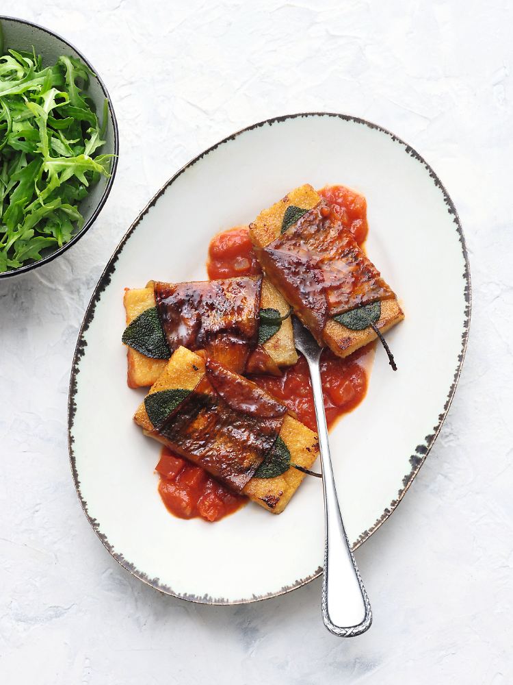 Saltimbocca geht auch vegetarisch: Hier ersetzt Polenta das Kalbfleisch.