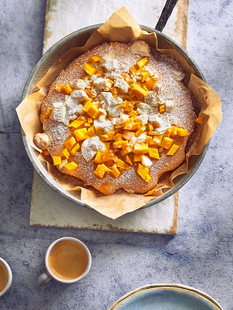 Tipp: Der Mangokuchen schmeckt sowohl warm als auch kalt sehr gut. Dazu passt natürlich eine Tasse Kaffee oder Tee.