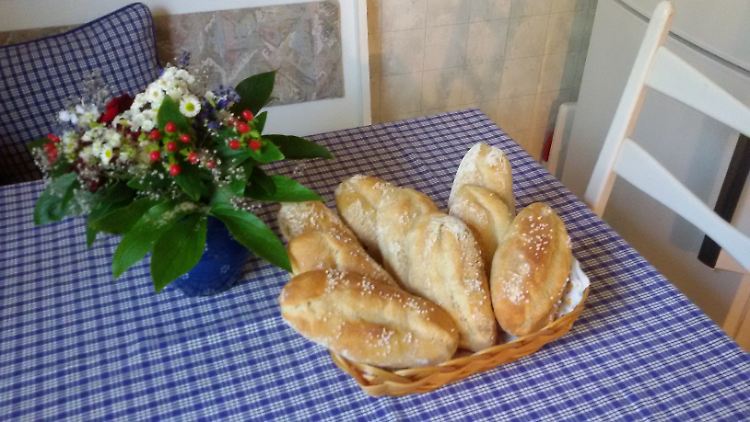Selbst in meiner Miniküche im Garten sind die Brötchen gelungen. 250 Grad sollte der Herd aber schon haben.
