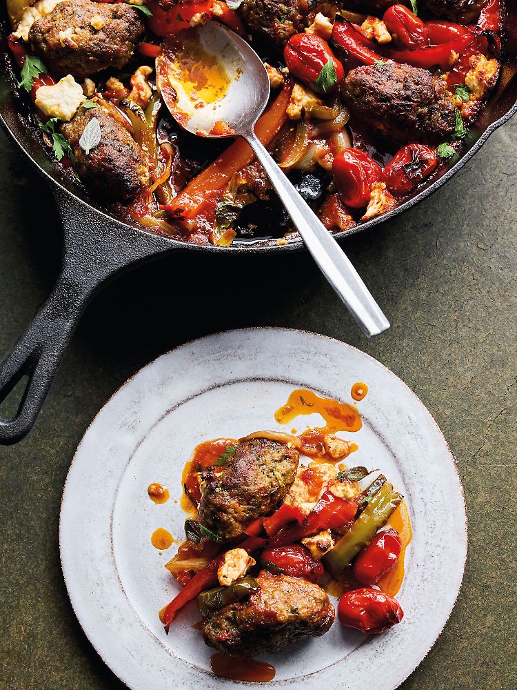 Gebackene Lamm-Köfte mit Paprika, Feta und Oregano