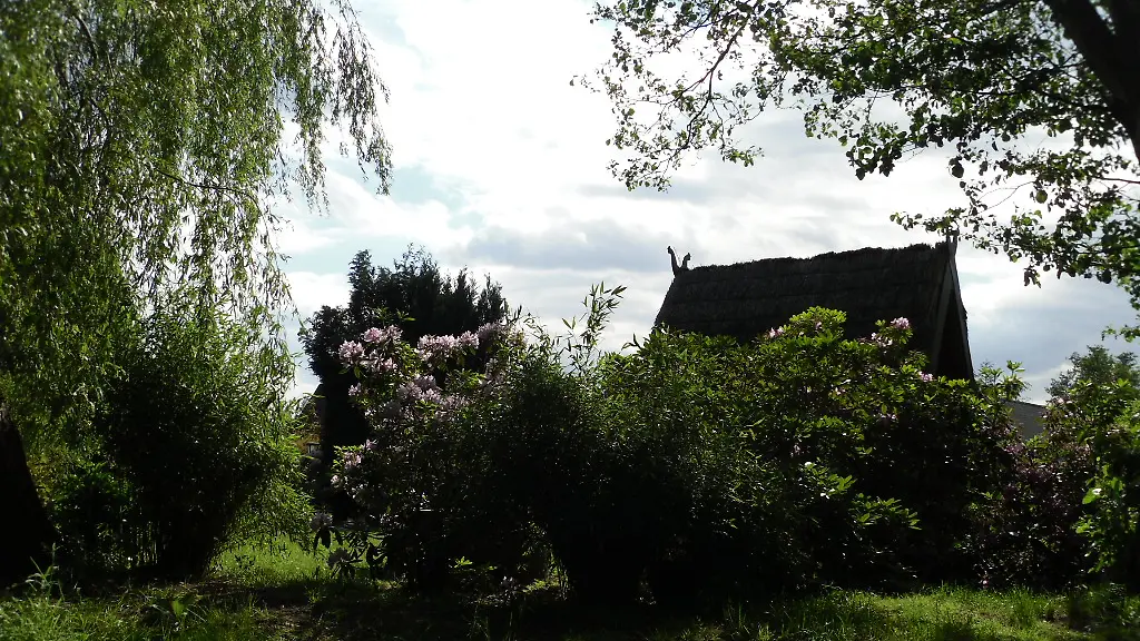 Die Spreewälder danken ihren guten Hausgeistern auf ihre Weise: An den Giebeln der traditionellen Blockhäuser sieht man meist ein Paar gekreuzter Schlangenköpfe mit Krönchen. Auf dem Wasserweg - entweder Sie paddeln selbst oder lassen staken - kann man etliche der Reet-Häuser mit diesem Giebelschmuck bewundern.