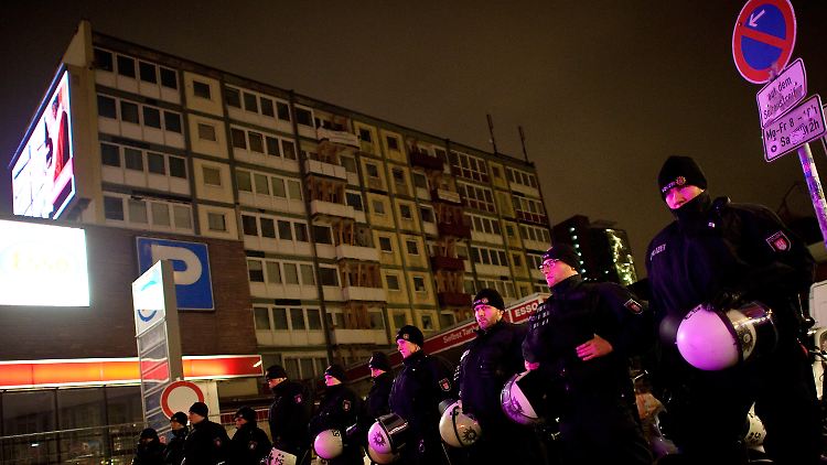 Laut Polizei demonstrierten am Sonntagabend etwa 750 Menschen friedlich im Stadtteil Sankt Pauli gegen die Räumung. Später hätten sich im Bereich des Schanzenviertels einige Vermummte gesammelt, die Richtung Altona zogen und unter anderem ein Polizeiauto mit Glasflaschen bewarfen sowie einen Mülleimer anzündeten.