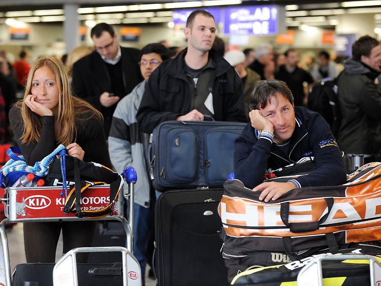 Lange Gesichter am Flughafen Frankfurt. Hier kam es auch zu Tumulten wütender Passagiere.