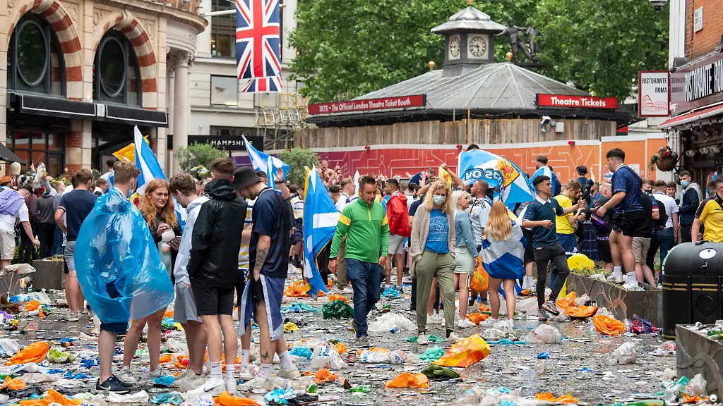 Knapp 2000 Corona-Fälle in Schottland lassen sich nach offiziellen Angaben in Verbindung mit Spielen der Fußball-Europameisterschaft bringen. Zwei Drittel von 1991 positiv Getesteten seien Fans, die entgegen der Ratschläge aus dem Norden zu Spielen nach London gereist seien, wie die Gesundheitsbehörde Public Health Scotland mitteilte. Am 18. Juni hatten die Schotten in London gegen England gespielt. Knapp 400 Infizierte aus Schottland sollen im Stadion gewesen sein, während in der Innenstadt Tausende weitere Fans Straßen und Plätze bevölkerten.