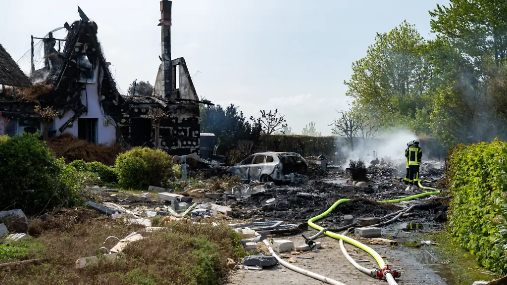 Nach einer Explosion ist in Putgarten im Norden der Insel Rügen am Morgen ein Feuer ausgebrochen und hat mindestens zwei Häuser zerstört. Wie Ermittlungen der Polizei ergaben, explodierte vermutlich eine Gasheizung in einem zu der Zeit unbewohnten Ferienhaus. Die Trümmerteile flogen etliche Meter weit und beschädigten dabei mehrere andere Häuser in der Ferienhausanlage am Ortsrand und auch dort abgestellte Autos. "Zum Glück wurde niemand verletzt", sagte Bürgermeisterin Iris Möbius.