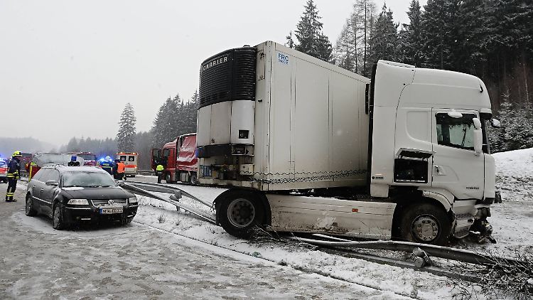 Ein deutscher Fernlinienbus ist in Tschechien mit einem Lastwagen zusammengestoßen, von der Fahrbahn abgekommen und umgekippt. Der Unfall ereignete sich auf der Autobahn E50 (D5) kurz vor dem früheren Grenzübergang Waidhaus-Rozvadov. Die Fahrbahn war schneebedeckt.