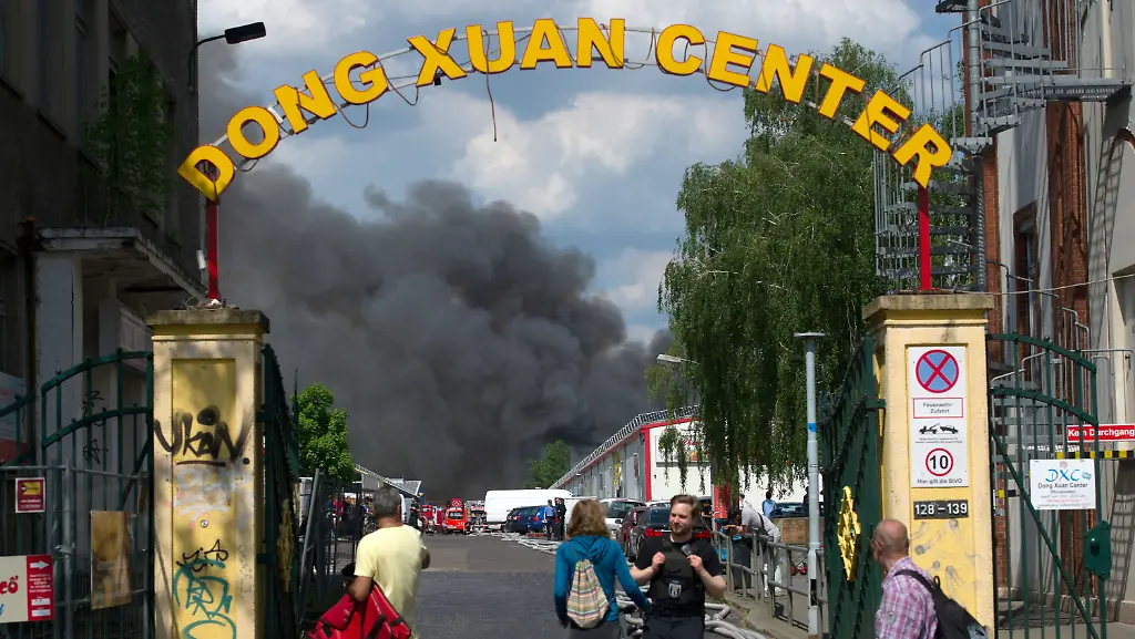 Auf dem Gelände von Berlins größtem Asia-Markt im Berliner Bezirk Lichtenberg ist am Vormittag ein Großfeuer ausgebrochen. Über weiten Teilen der Hauptstadt war eine gewaltige Rauchwolke zu sehen. Laut Feuerwehr brennt im Dong Xuan Center eine etwa 6000 Quadratmeter große Halle, wie die "Berliner Zeitung" berichtet. In anderen Berichten war die Halle indes nur 600 Quadratmeter groß. Dort seien vor allem Chemikalien zur Herstellung von Nagellack gelagert. "Es gibt immer wieder Explosionen", sagte der Sprecher. Menschen sind offenbar nicht zu Schaden gekommen.