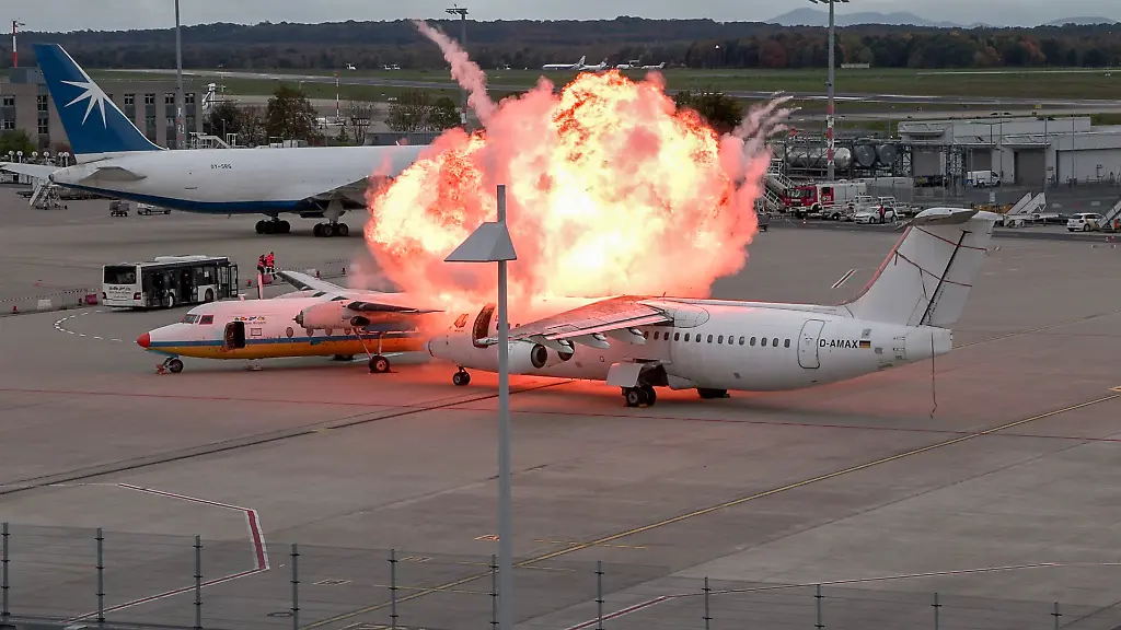 Rettungskräfte proben ErnstfallFeuerball erhellt Kölner Flughafen