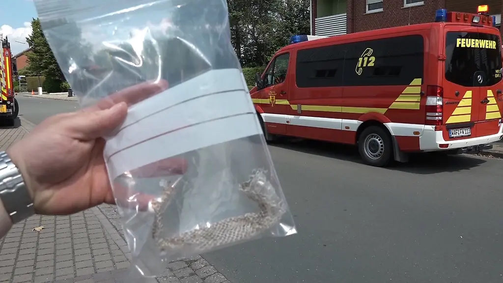 Die Bewohner eines Reihenhauses im münsterländischen Warendorf haben in ihrer Küche ein Stück Schlangenhaut gefunden. Ein Reptilienexperte geht nach Angaben der Feuerwehr Warendorf davon aus, dass das gut 30 Zentimeter lange Stück von einem jungen Tigerpython stammt. Er habe die Größe der Würgeschlange auf 80 bis 90 Zentimeter geschätzt, sagte Christian Reinker von der Feuerwehr Warendorf. Das Tier selbst wurde zunächst nicht gesichtet.