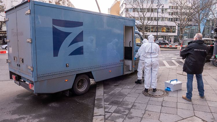 Gegen 10 Uhr war der Alarm bei der Polizei eingegangen. Der Kurfürstendamm ist um die Uhrzeit und auch wegen der Corona-Pandemie nicht so voll wie sonst. Zeugen erzählen der Polizei später, mindestens vier Männer hätten zwei Geldboten bedroht, die gerade vor einer Volksbank an der Ecke Bleibtreustraße Geldkassetten aus ihrem Transporter luden.