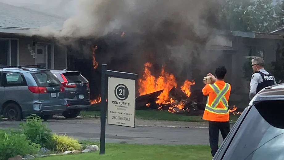 Der Crash ereignete sich kurz nach dem Abheben des Jets auf dem Flughafen von Kamloops, nahe Vancouver, wie der kanadische Sender CBC berichtete. Videoaufnahmen zeigen, wie der Jet plötzlich in einer Steilkurve nach oben zieht und dann senkrecht zu Boden stürzt. Die Maschine sei in einem Wohngebiet in den Vorgarten eines Hauses gestürzt und dort in Flammen aufgegangen. Berichten von Augenzeugen zufolge konnte sich ein Besatzungsmitglied mit dem Schleudersitz in Sicherheit bringen.