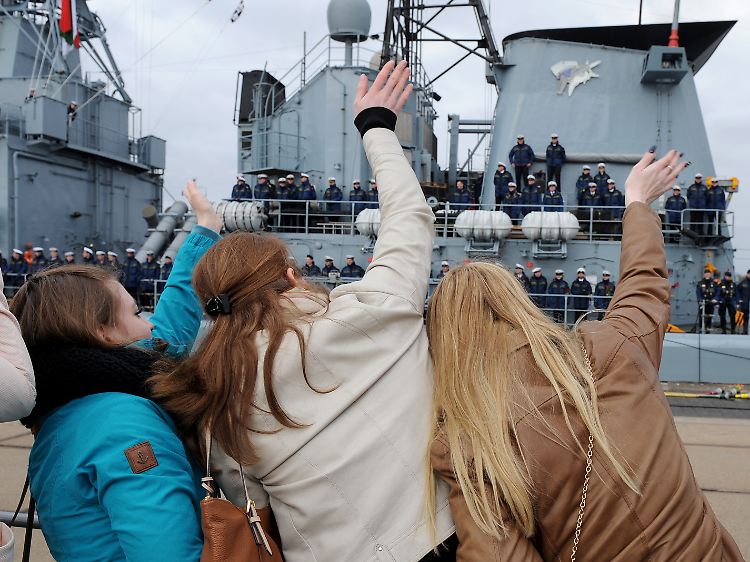 Wiedersehen in Wilhelmshaven: Ein Kriegsschiff der Bundeswehr kehrt kurz vor Ostern nach langem Einsatz nach Hause zurück. Die Fregatte "Augsburg" war im Persischen Golf unterwegs, um den Franzosen im Kampf gegen den IS beizustehen.