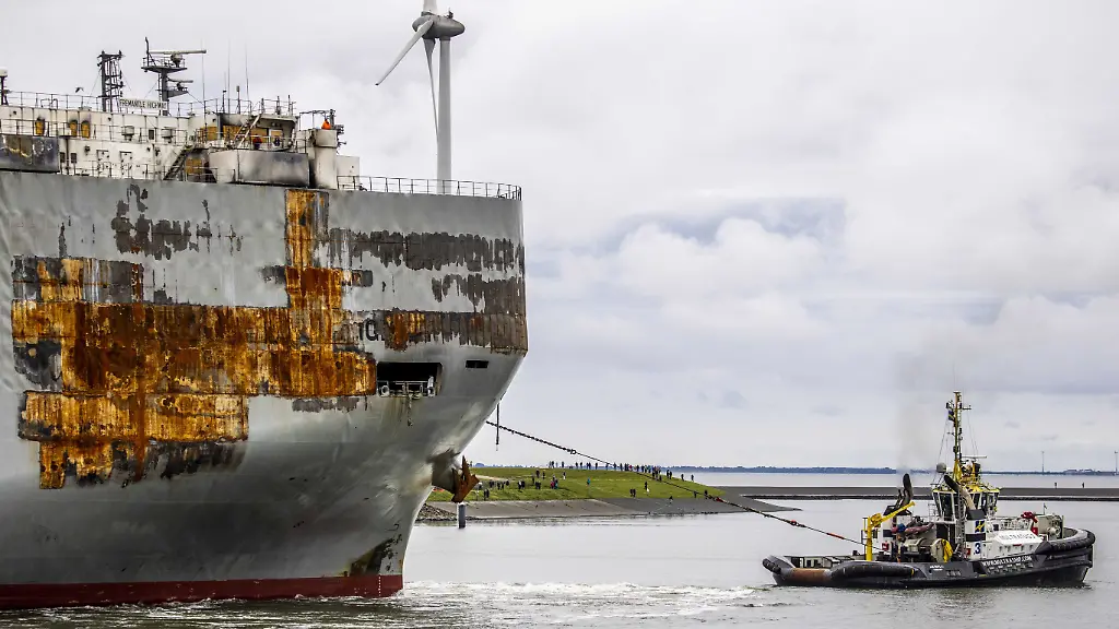 Seit August ankert der durch einen Brand stark zerstörte Frachter "Fremantle Highway" in Eemshaven. Nun wird der japanische Frachter zum Hafen von Rotterdam geschleppt. Dort soll eine Inspektion endlich Antworten zur weiterhin ungeklärten Brandursache geben.