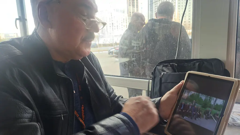 Er zeigt auf seinem Tablet alte Fotos. "Hier ist unsere alte Brigade. Die Hälfte lebt schon nicht mehr." Insgesamt helfen damals rund 800.000 Liquidatoren aus der gesamten damaligen Sowjetunion bei der Beseitigung der Folgen der Atomkatastrophe und dem Bau des Betonsarkophags.