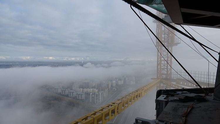 Der 77. Stock liegt an diesem Herbsttag im Nebel. Arbeiter in bunten Overalls, gesichert wie Bergsteiger, bugsieren über dem grauen Nichts die Fassadenteile an ihren Platz. Nur gelegentlich geben die Wolken den Blick in die Tiefe frei. Hochhäuser, Parks, das Fußballstadion Zenit-Arena sehen von oben wie winzige Modellbauten aus. Das himmelstürmende Hochhaus ist in St. Petersburg nicht unumstritten. Gazprom wollte den neuen Firmensitz erst mitten im Zentrum bauen, wo er die barocken Zarenpaläste und andere Architekturschätze in den Schatten gestellt hätte. Dagegen regte sich Widerstand in der Stadt, und auch die UN-Kulturorganisation Unesco meldete Bedenken an. 2010 entschloss sich Gazprom deshalb zu dem neuen Standort.