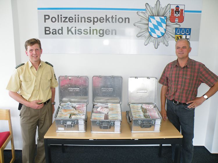 Die aus einem Geldtransporter verschwundenen Koffer mit einer Million Euro sind wieder aufgetaucht. Wie die Polizei in Würzburg mitteilte, gab ein Soldat der Bundeswehr die Behälter bei der Polizei in Bad Kissingen ab. Der 41-Jährige gab an, die Koffer an der Autobahnauffahrt gefunden und mitgenommen zu haben. Warum er das tat und warum er sie erst zwei Tage später bei der Polizei abgab, war zunächst unklar. Die Polizei in Bad Kissingen vernahm den Mann.
