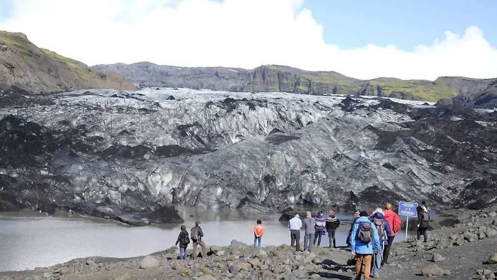 Die Lava am Gletschersee ist tiefschwarz und fein. So fein, dass sie leicht den Weg in die Wanderstiefel findet. Bizarr geformte Steine und Felsbrocken in allen Grautönen liegen herum, Lavahaufen türmen sich auf. Und Eis, überall Eis. Doch anders als an vielen anderen Gletschern ist das Eis am Solheimajökull an der Südküste Islands nicht türkisblau, sondern weiß. So sieht es zumindest vom Fuß der Gletscherzunge des etwa zehn Kilometer langen Myrdalsjökulls aus. Die Sonne hat sich vor geraumer Zeit hinter den Wolken versteckt, es regnet. Dadurch wird das Fehlen der Farben noch auffälliger: "Wie in einem Schwarz-Weiß-Film kommt man sich hier vor", sagt Paul, der aus dem US-Bundesstaat Virginia zu Besuch in Island ist.