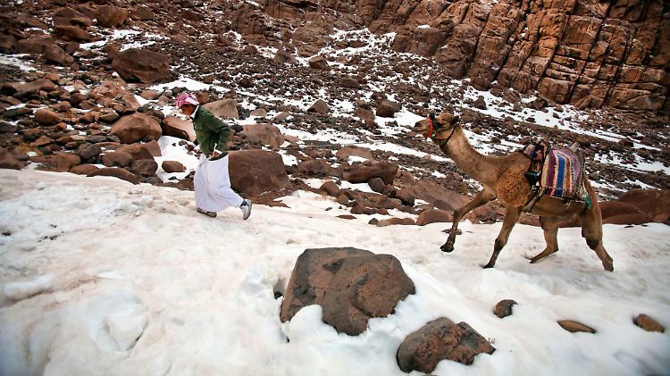 Seltener Anblick auf dem Sinai: Mitte Dezember versank der Nahe Osten erstmals seit Jahrzehnten im Schnee.