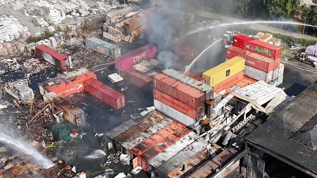 Um die Lage weiter unter Kontrolle behalten zu können, sollen jetzt die umstehenden und übereinander gestapelten Container kontrolliert werden. "Der Inhalt der Container ist uns nicht bekannt. Die werden jetzt zusammen mit dem Betreiber geöffnet." Im Anschluss soll die Lagerhalle abgetragen werden.