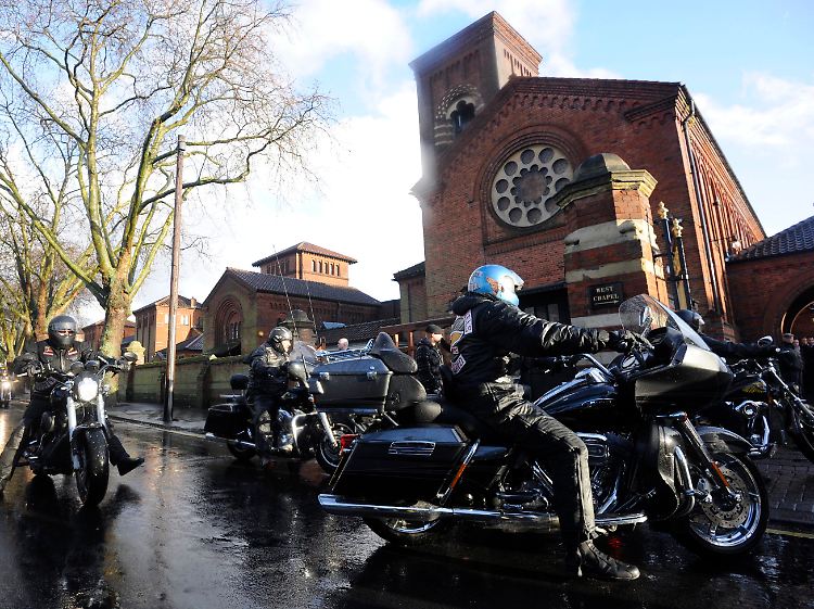 Auch die Hells Angels, hier vor dem Krematorium, gehören zu den Freunden und Wegbegleitern von Ronnie Biggs.