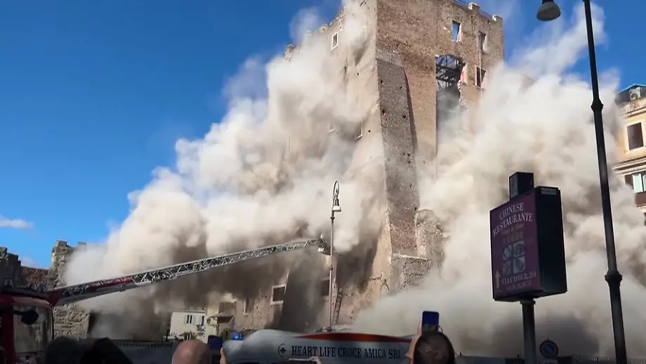 Eine Person in den TrümmernTeil eines historischen Turms in Rom bei Bauarbeiten eingestürzt