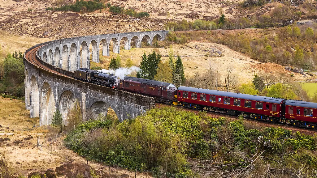 Der historische Zug ist auch als "echter Hogwarts Express" bekannt. Mit 160 Kilometern pro Stunde fährt der Zug durch die schottische Landschaft. Das Highlight der Strecke durch die schottischen Highlands ist die Überquerung des Glenfinnan-Viadukts. Die Stelle ist bei Touristen besonders beliebt, da sie auch in den "Harry Potter"-Verfilmungen gezeigt wird.