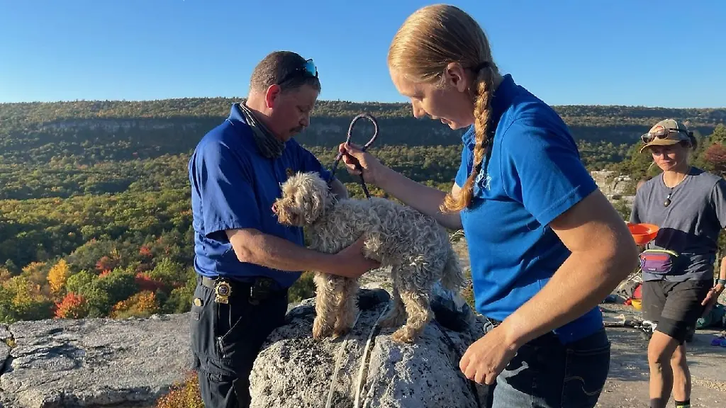 Am 7. Oktober sei eine Frau mit ihrem Hund gewandert, dabei sei er in den Spalt gestürzt. Man habe sein Bellen gehört. Parkmitarbeiter hätten in den folgenden Tagen versucht, die Stelle in ungefähr zwölf Metern Tiefe zu erreichen. Am Dienstag schließlich hätten es Helfer des Tierschutzvereins Ulster County und eines Höhlenrettungsteams geschafft, den Hund aus der engen Spalte zu retten.