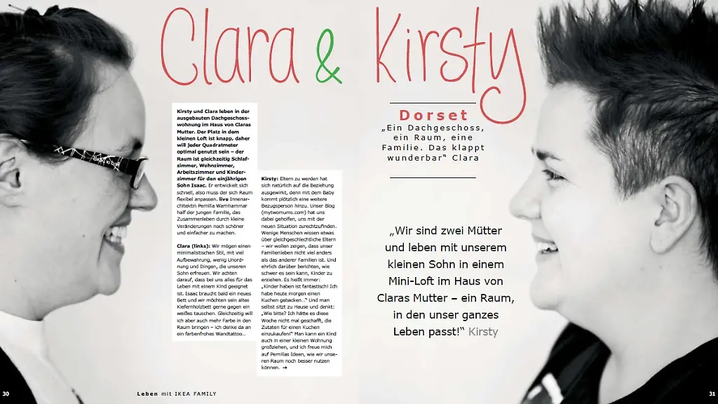Ein Dachgeschoss, ein Raum, eine Familie. "Das klappt wunderbar", das sagen Clara und Kirsty. Die beiden Britinnen stehen im Mittelpunkt einer Reportage des Ikea-Kundenmagazins "Family". Darin schildert das lesbische Paar, wie es in einem Loft in London mit Sohn Isaac zusammenlebt. Die Bilder von Clara und Kirsty bergen nichts Anstößiges. Und doch erschienen sie nicht weltweit. So flogen Clara und Kirsty kurzerhand aus der russischen Ausgabe. Ikea zensierte den Artikel, weil die beiden lesbisch sind.