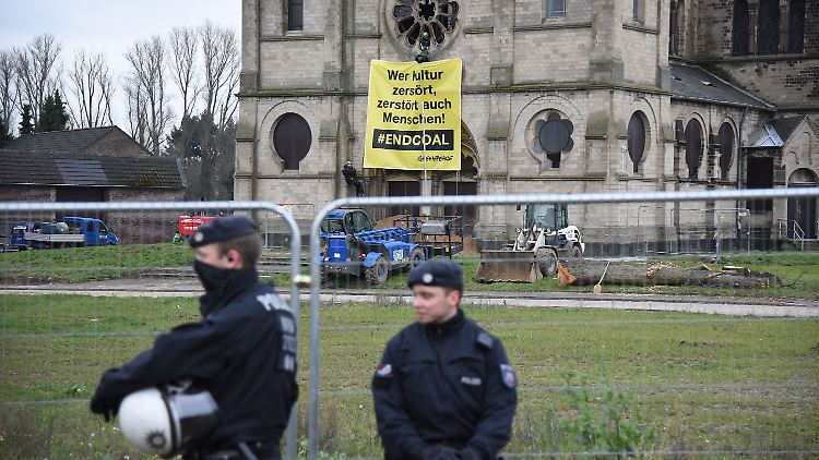 Es ist kurz nach 14 Uhr als sich die erste Baggerschaufel in das Dach des Chorraums des Immerather Doms gräbt - unter Rufen und Pfeifen von Anwohnern und Aktivisten. Trotz zahlreicher Proteste ist am Montag im nordrhein-westfälischen Immerath mit dem Abriss einer neoromanischen Kirche aus dem 19. Jahrhundert begonnen worden. Der Grund: Das Gotteshaus befindet sich wie das ganze Dorf auf dem Gebiet des geplanten Braunkohletagebaus Garzweiler der RWE südlich von Mönchengladbach.