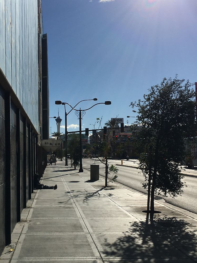 Ein Obdachloser in Downtown Las Vegas wenige Meter vom Glitzerparadies entfernt.