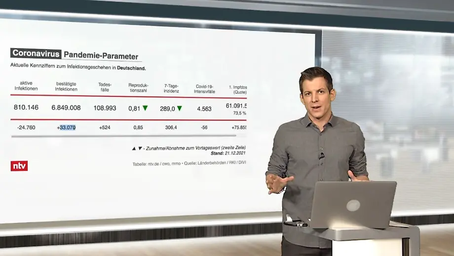Hinweis: Die Zahlen des RKI weichen in der Regel leicht von jenen Falldaten ab, die ntv.de täglich am Abend meldet. Das ntv.de-Datenteam greift direkt auf die Meldezahlen aus den Bundesländern zu, wie sie von den Ministerien und Behörden vor Ort veröffentlicht werden. Das RKI hingegen ist an die gesetzlich vorgeschriebenen Meldewege gebunden, was zu einem zeitlichen Verzug führen kann.