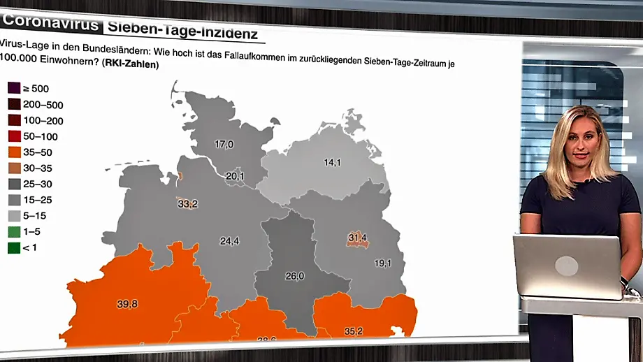 Hinweis: Die Zahlen des RKI weichen in der Regel leicht von jenen Falldaten ab, die ntv.de täglich am Abend meldet. Das ntv.de-Datenteam greift direkt auf die Meldezahlen aus den Bundesländern zu, wie sie von den Ministerien und Behörden vor Ort veröffentlicht werden. Das RKI hingegen ist an die gesetzlich vorgeschriebenen Meldewege gebunden, was zu einem zeitlichen Verzug führen kann.