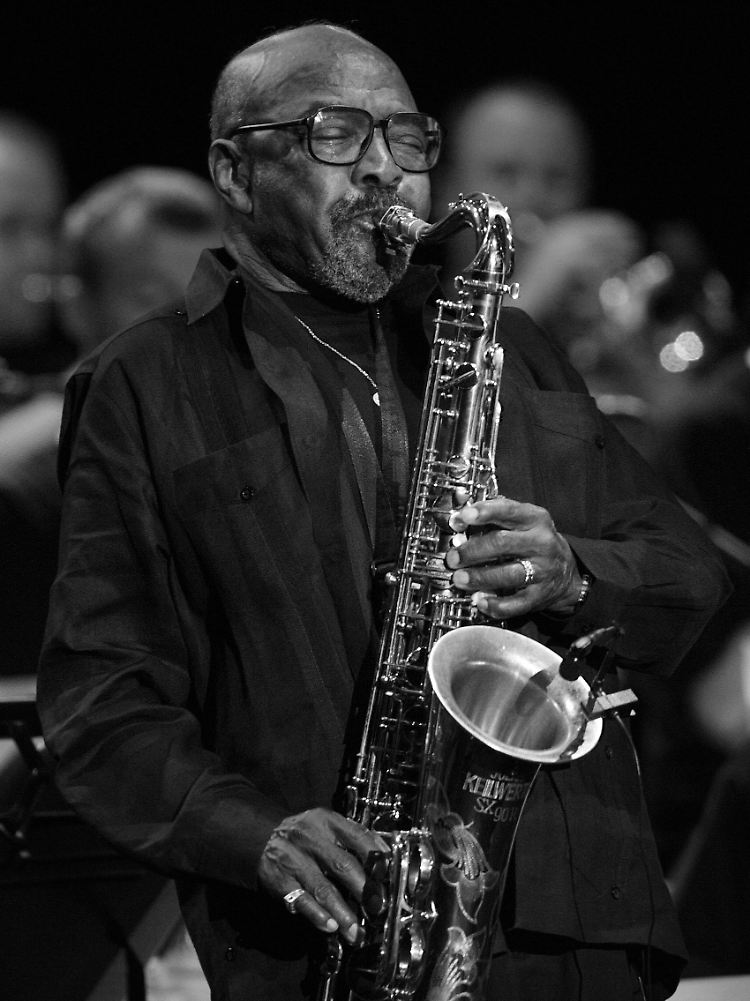 Am Saxophon: James Moody, hier bei einem Auftritt auf der Bühne des 42. Montreux Jazz Festival im Juli 2008.