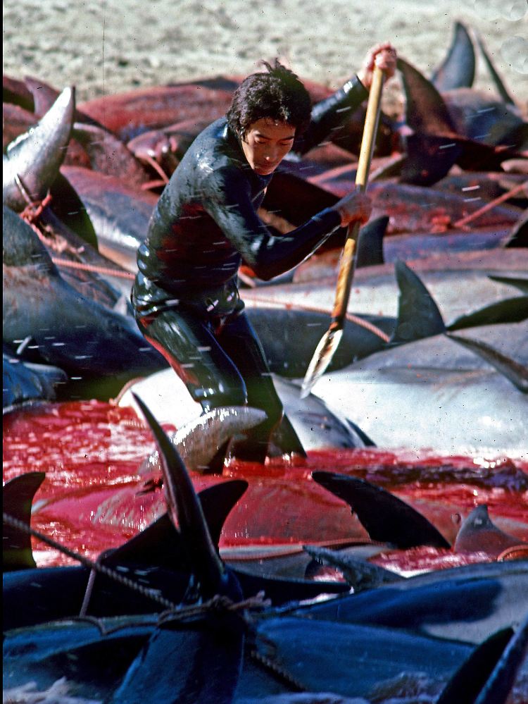 Tausende von Delfinen fallen auf diese Weise in Taiji, rund 700 Kilometer südlich von Tokio, sowie wenigen anderen Orten Japans der Treibjagd zum Opfer - mit Billigung der Regierung, die Fangquoten setzt. Die Jagd an der Küste unterliegt nicht der Kontrolle der Internationalen Walfangkommission. Ein Teil des laut Umweltschützern hochgradig mit Quecksilber verseuchten Fleisches der abgestochenen Kleinwale gelangt später in den Handel.