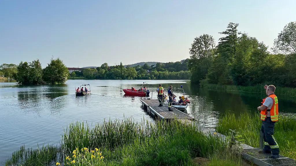 Laut Polizei informierten Zeugen gegen 17.45 Uhr die Einsatzleitstelle über einen Badeunfall mit zwei vermissten Personen. Feuerwehr, DLRG, Polizei und weitere Rettungskräfte begannen den Angaben zufolge umgehend mit der intensiven Suche nach den vermissten Jugendlichen. Auch ein Polizeihubschrauber war im Einsatz.
