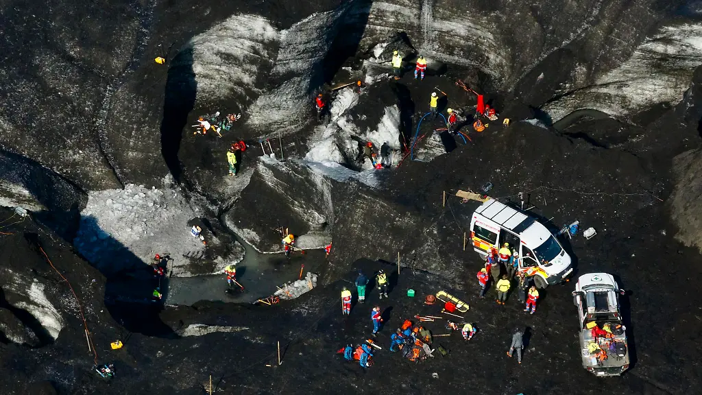 So schön die Szenerie, so schwierig waren nach dem Eishöhlen-Einsturz die Sucharbeiten nach den vermeintlich Vermissten: Wegen der gefährlichen Bedingungen vor Ort und der Dunkelheit wurde die Suche in der Nacht unterbrochen, am frühen Morgen bereits mit voller Kraft wiederaufgenommen. Eine Drohnenaufnahme des isländischen Rundfunksenders RÚV zeigte Dutzende Arbeitskräfte, die vor allem mit Händen und Schaufeln in den mit schwarzem Sandgestein bedeckten Eismassen nach den Verschollenen suchten. Schwere Maschinen konnten sie dabei aufgrund des unwegsamen Geländes nicht verwenden.