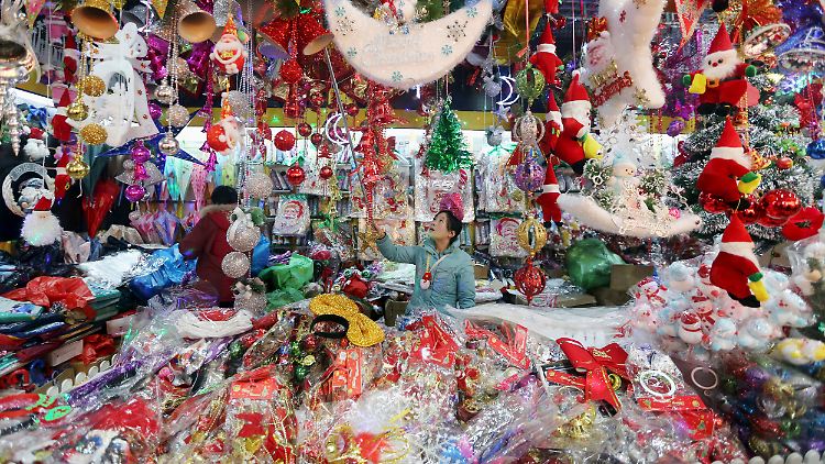 Wenn die Chinesen etwas aus dem Rest der Welt für ihre eigene Kultur übernehmen, dann geschieht das unter vollem Einsatz. Weihnachten zählt seit einigen Jahren zu den Importschlagern. In den Zentren großer Städte findet man geschmückte Tannenbäume, Weihnachtsmärkte mit Glühwein und belgischen Rahmwaffeln, Weihnachtsmänner auf Rentierschlitten und natürlich das unverzichtbare "Jingle Bells" als gefühlte Dauerschleife durch die Lautsprecher von Kaufhäusern und Einkaufsstraßen. Das macht China längst zu einem interessanten Absatzmarkt für die produzierende Industrie, die natürlich auch zu großen Teilen chinesisch ist: 80 Prozent des weltweiten Bedarfs an Christschmuck wird in der Volksrepublik hergestellt.